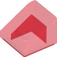 Český název dílku: kostka (kostička) 1x1x2/3 sklon (šikmá) 30° hladká, průhledná červená