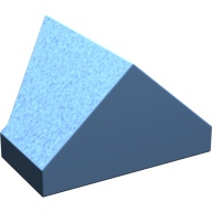 Český název dílku: kostka (kostička) střecha 2x1 sklon (šikmá) 45° oboustranná hladká zkosená, středně modrá