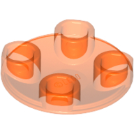 Český název dílku: destička kulatá 2x2 hladká invertovaná, průhledná neonově oranžová
