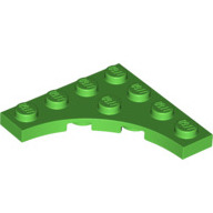 Anglický název dílku: plate 4 x 4 with curved cutout, BRIGHT GREEN