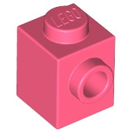 Anglický název dílku: brick, modified 1 x 1 with stud on 1 side, CORAL
