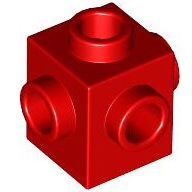 Anglický název dílku: brick, modified 1 x 1 with studs on 4 sides, RED