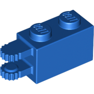 Anglický název dílku: brick hinge 1 x 2 locking with 2 fingers horizontal end, BLUE