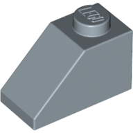 Český název dílku: kostka (kostička) 1x2 sklon (šikmá) 45°, pískově modrá