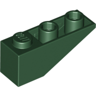 Český název dílku: kostka (kostička) 1x3 sklon (šikmá) 25° invertovaná, tmavě zelená