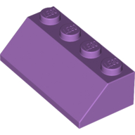 Anglický název dílku: brick 2 x 4 slope 45°, MEDIUM LAVENDER
